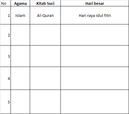 Kemudian kita juga sebagai bangsa Indonesia juga mesti tahu keberagaman suku itu apa saja? keberagaman agama itu apa saja? Coba kalian tuliskan dalam kolom tentang keberagaman agama serta suku di Indonesia. Kalian bisa cari referensi dibuku paket atau internet yaa..